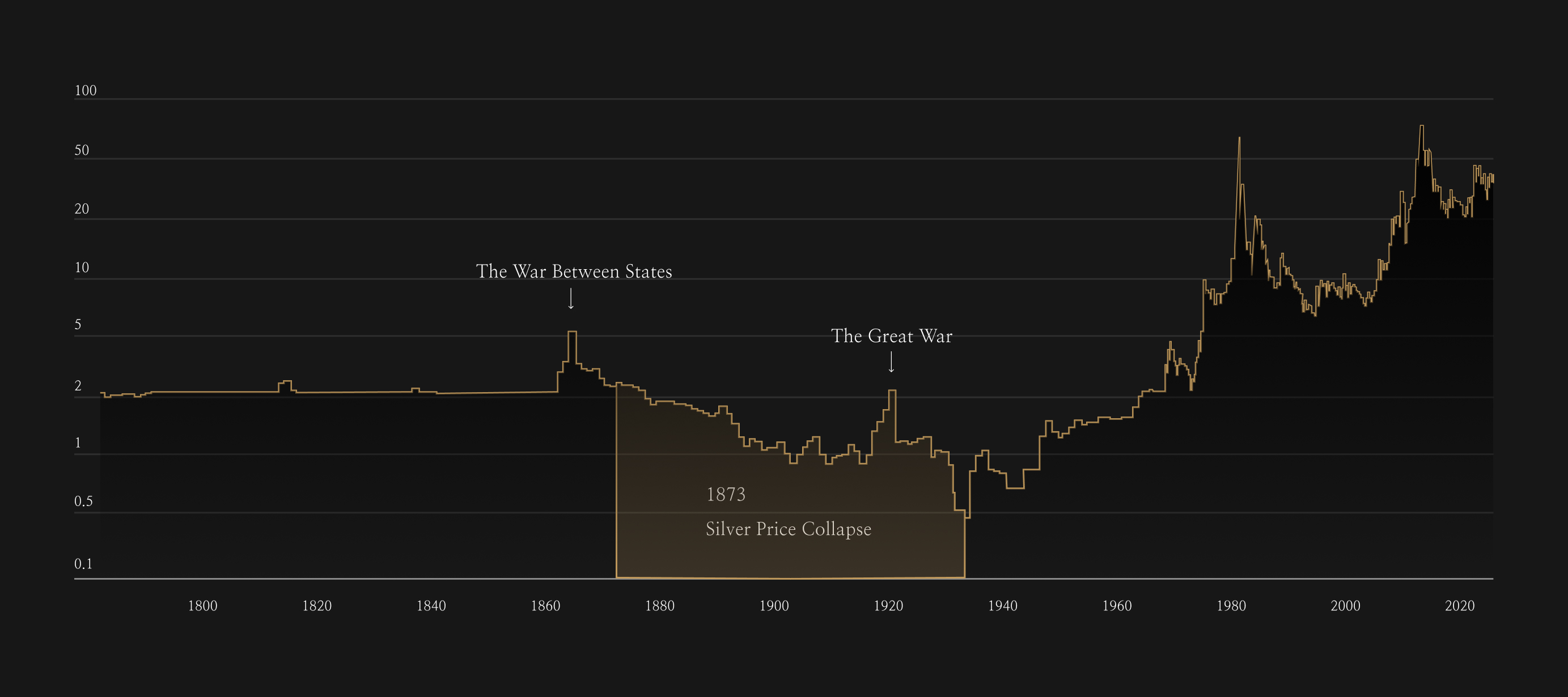 The current injustice of our monetary system can be traced not to 2008, not to 1971, not even to 1933 when Roosevelt stole everyone’s gold or even to 1913 when the Federal Reserve was established, but all the way back to 1873 when the collective purchasing power of America’s poor and middle class silver stackers was stolen with the stroke of a pen and handed to the politically connected rich.